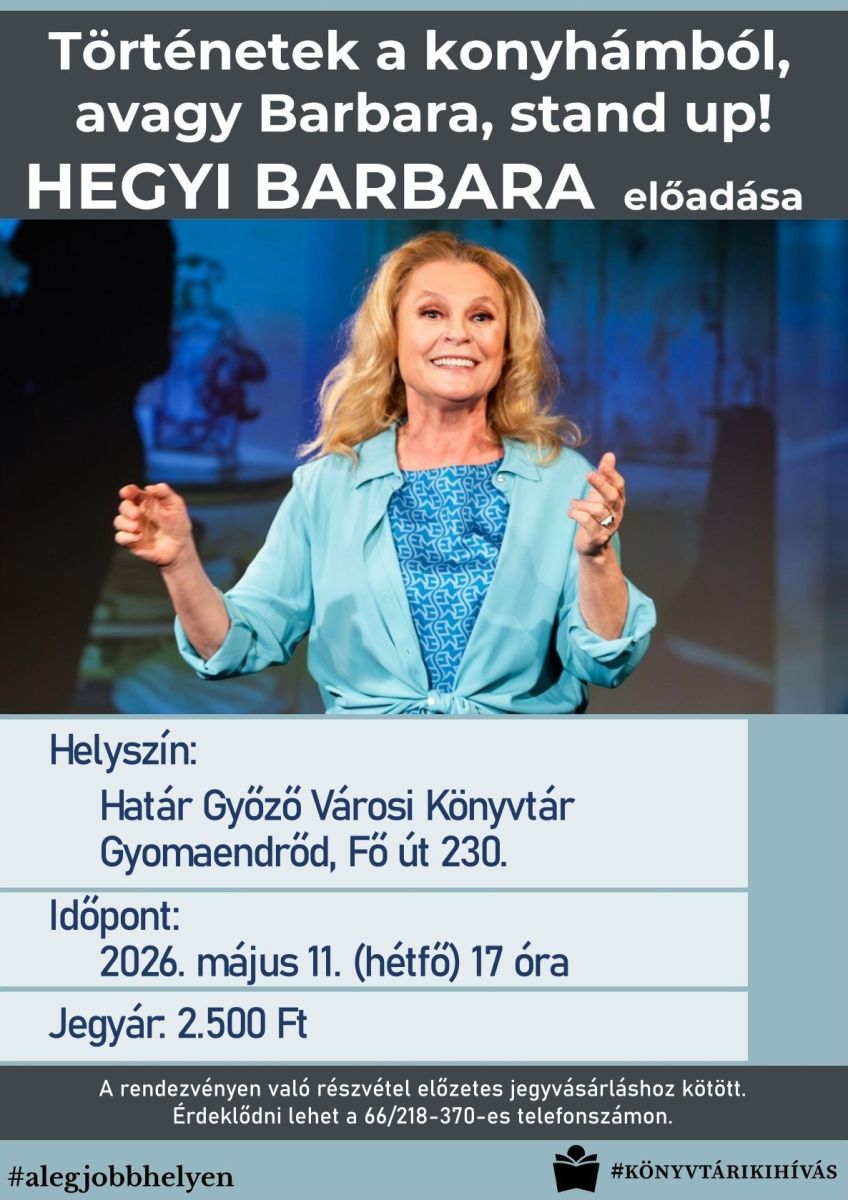 Hegyi Barbara önálló estje személyes hangvételű, humorral és érzelemmel átszőtt utazás a családi emlékek, az étkezések és az ünnepek világába. Az előadás alapját azok a történetek adják, amelyek korábban a Park Kiadó gondozásában megjelent recepteskönyveit is gazdagították: családtagokhoz, közös asztalokhoz, főzéshez és ünnepi alkalmakhoz kötődő pillanatok.