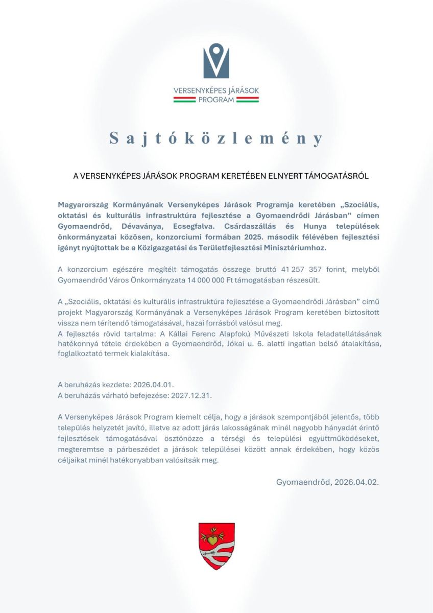 Kedves Látogató! Tájékoztatjuk, hogy a gyomaendrod.hu honlap felhasználói élmény fokozásának érdekében cookie-kat alkalmazunk. A honlapunk használatával ön a tájékoztatásunkat tudomásul veszi. Részletek